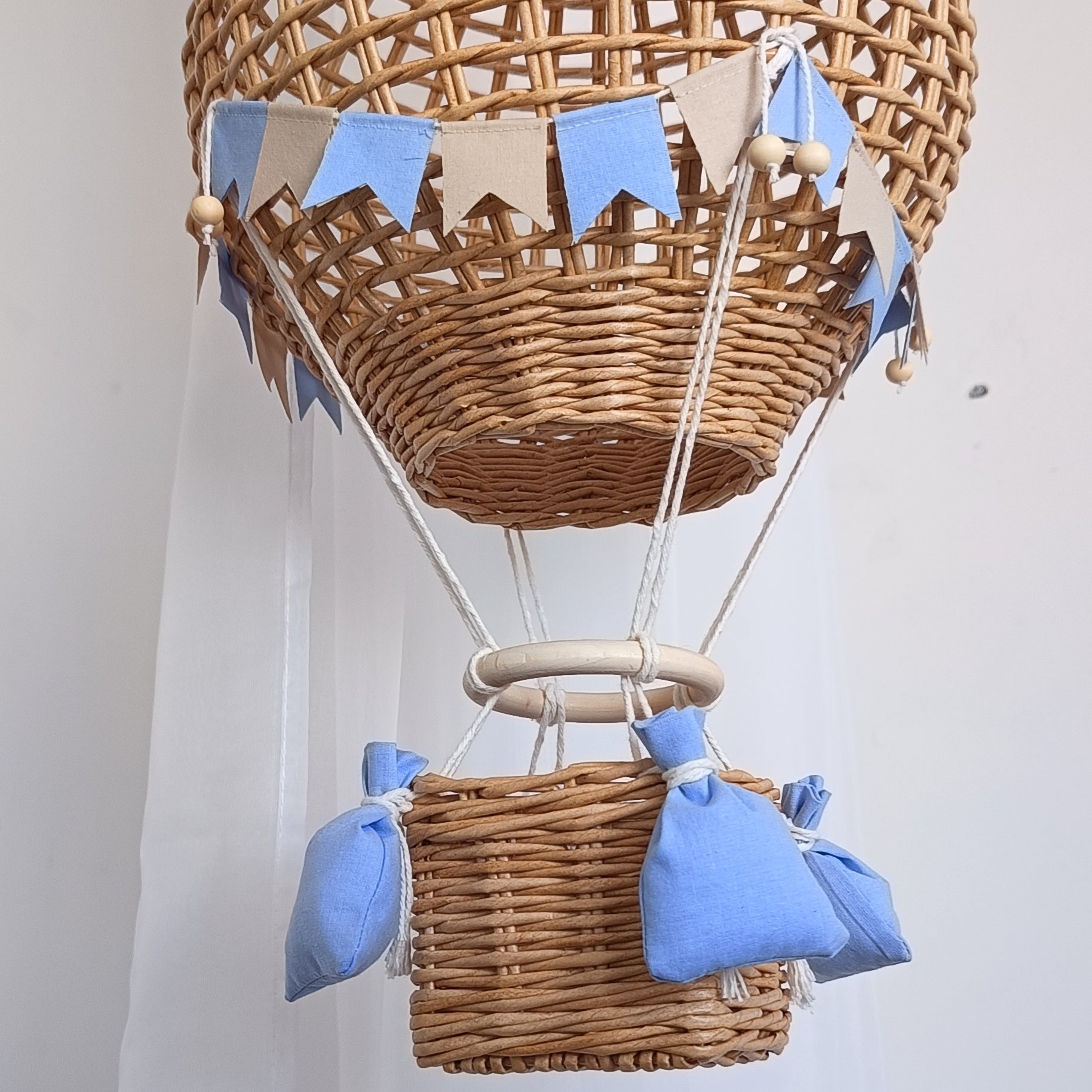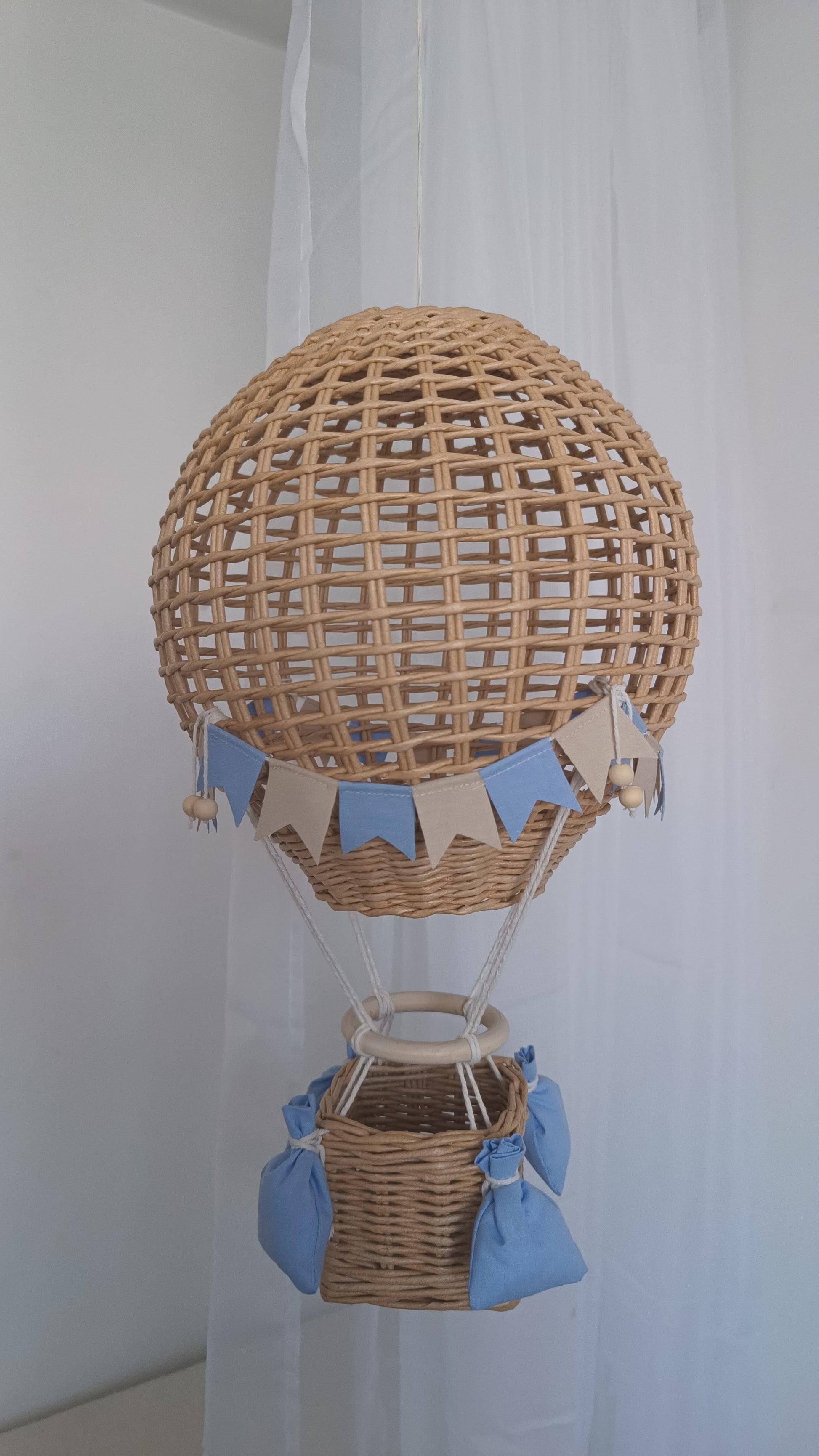 Balon został ręcznie wykonany z wikliny papierowej, co nadaje mu naturalny urok i lekkość. To subtelna dekoracja, która pięknie ozdobi przestrzeń nad łóżeczkiem, półką lub w rogu pokoju.