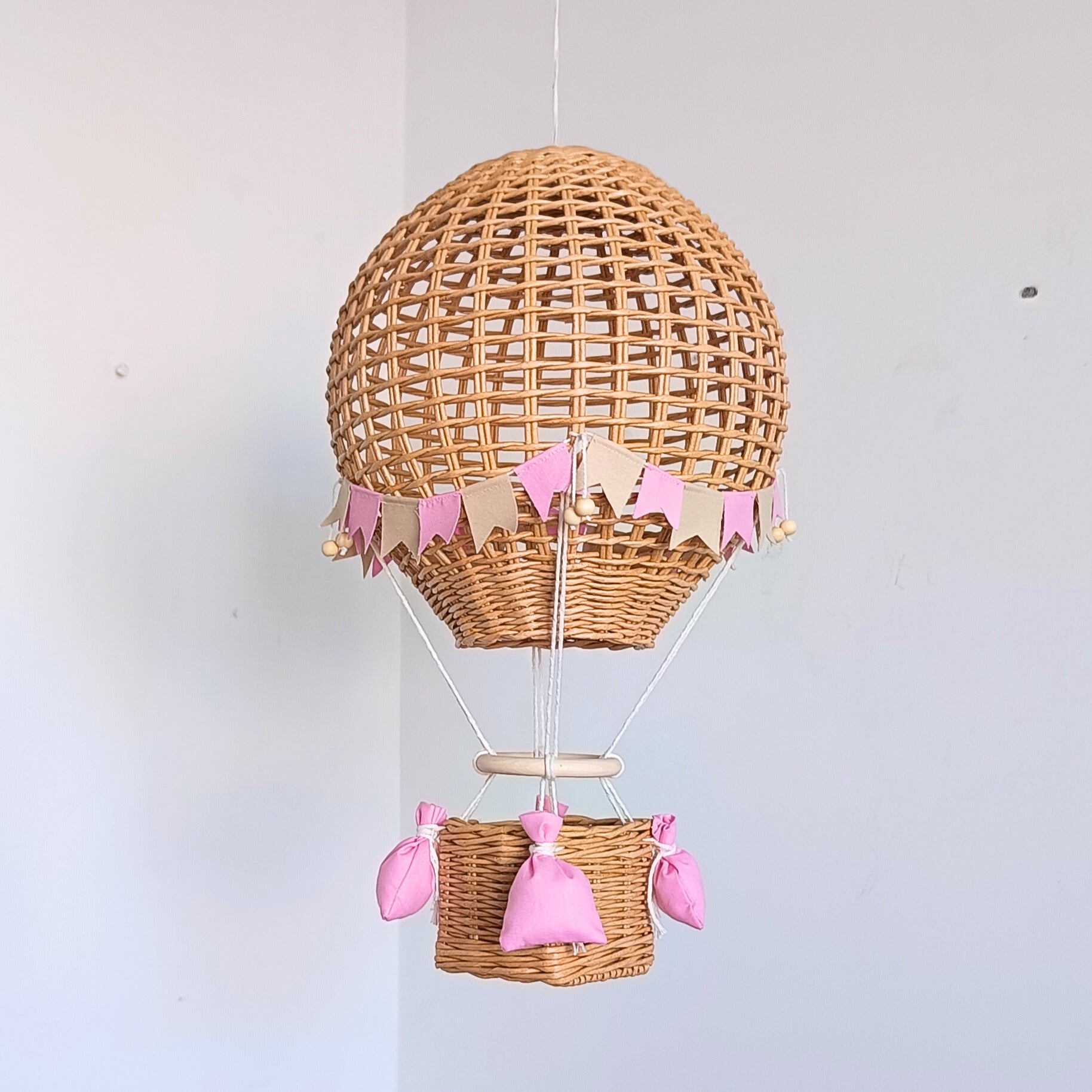 Balon został ręcznie wykonany z wikliny papierowej, co nadaje mu naturalny urok i lekkość. To subtelna dekoracja, która pięknie ozdobi przestrzeń nad łóżeczkiem, półką lub w rogu pokoju.