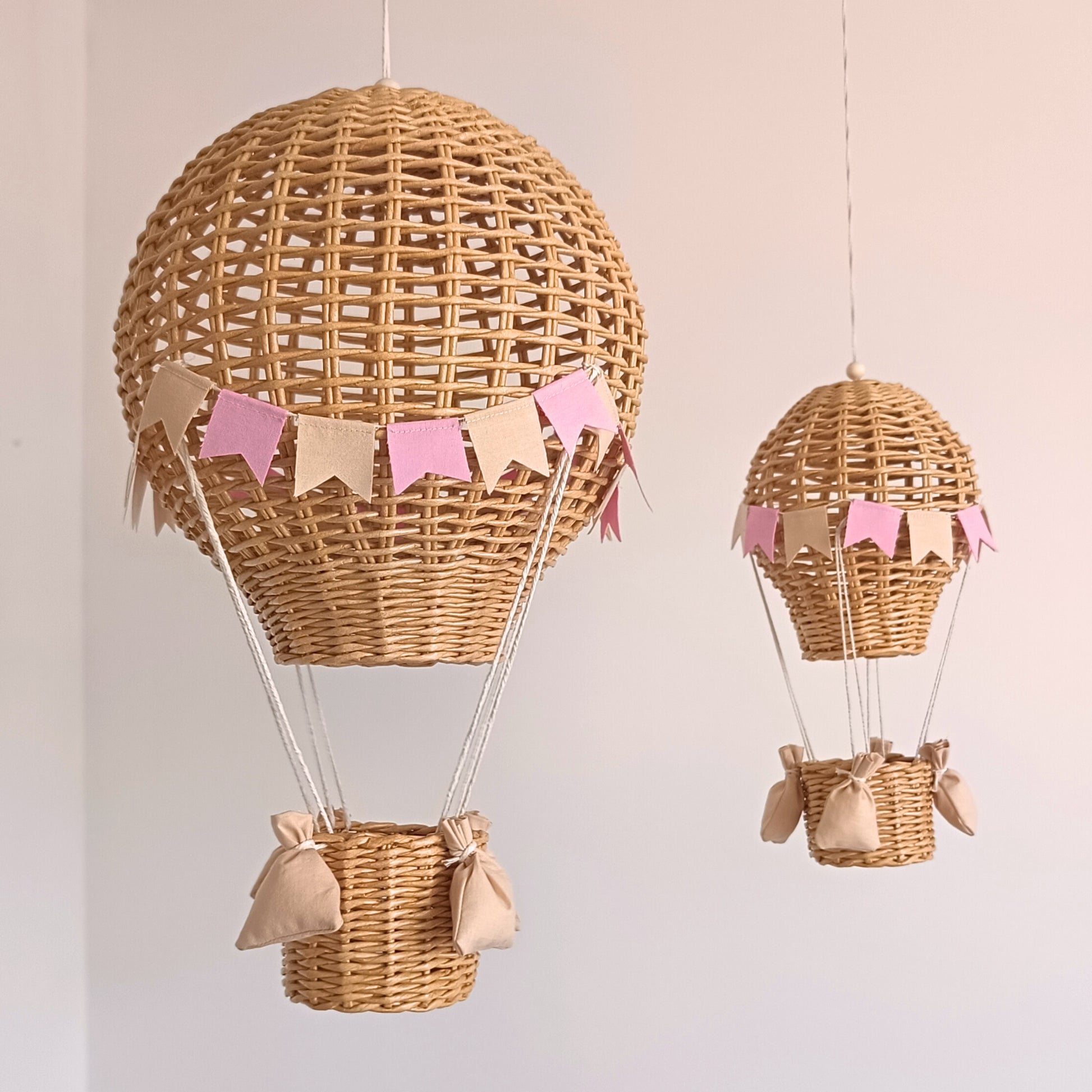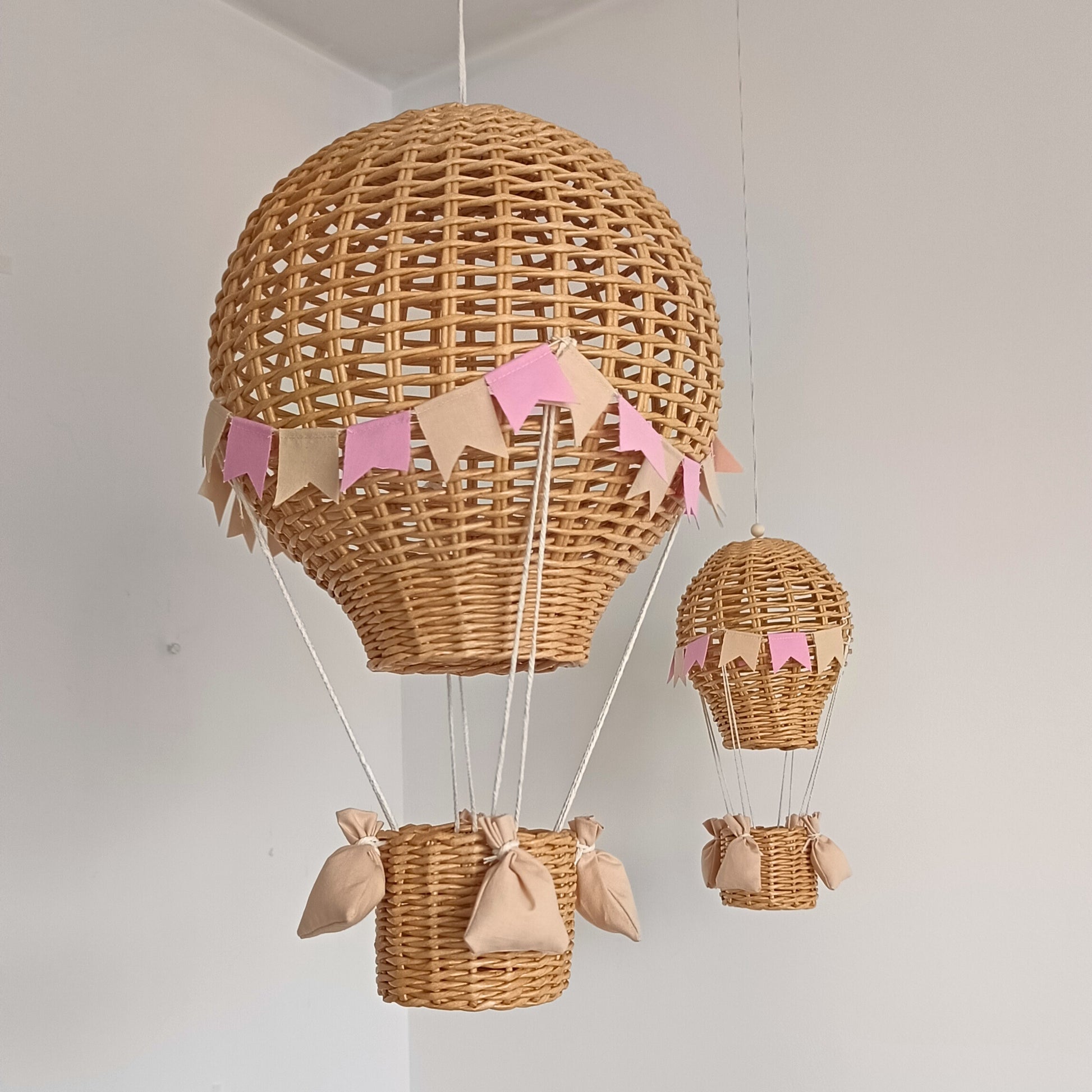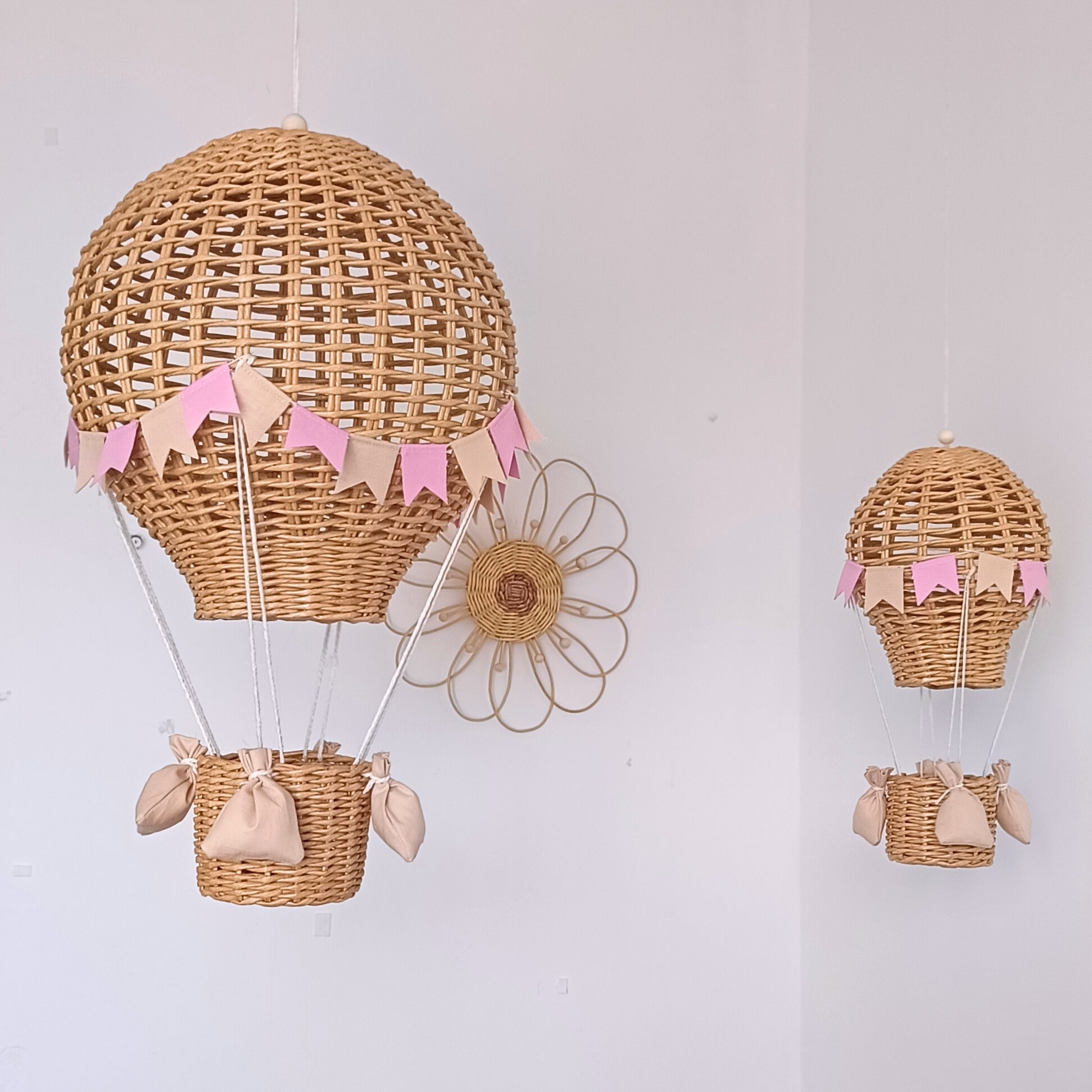 Każdy balon został ręcznie wykonany z wikliny papierowej, co nadaje mu lekkości i naturalnego uroku. Idealnie sprawdzi się jako dekoracja nad łóżeczkiem, półką lub w kąciku zabaw.
