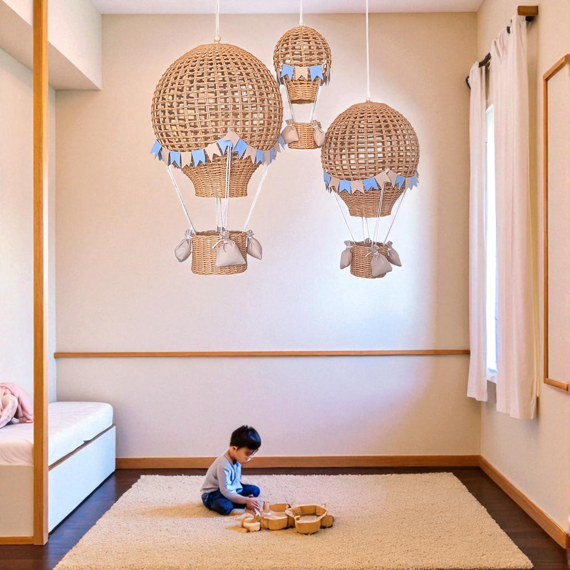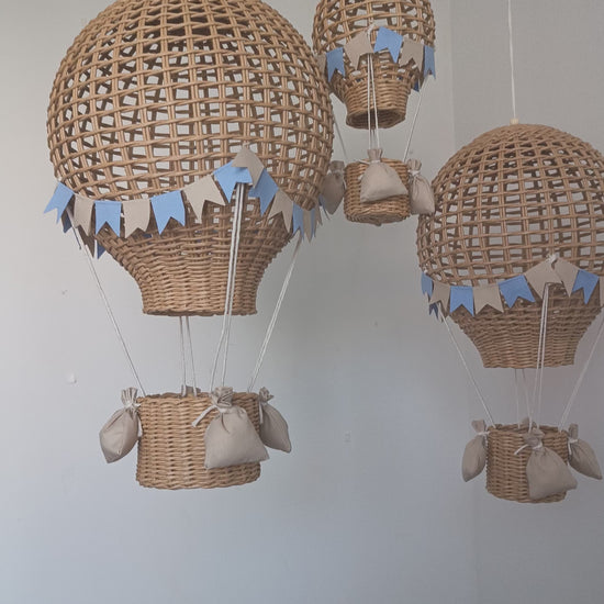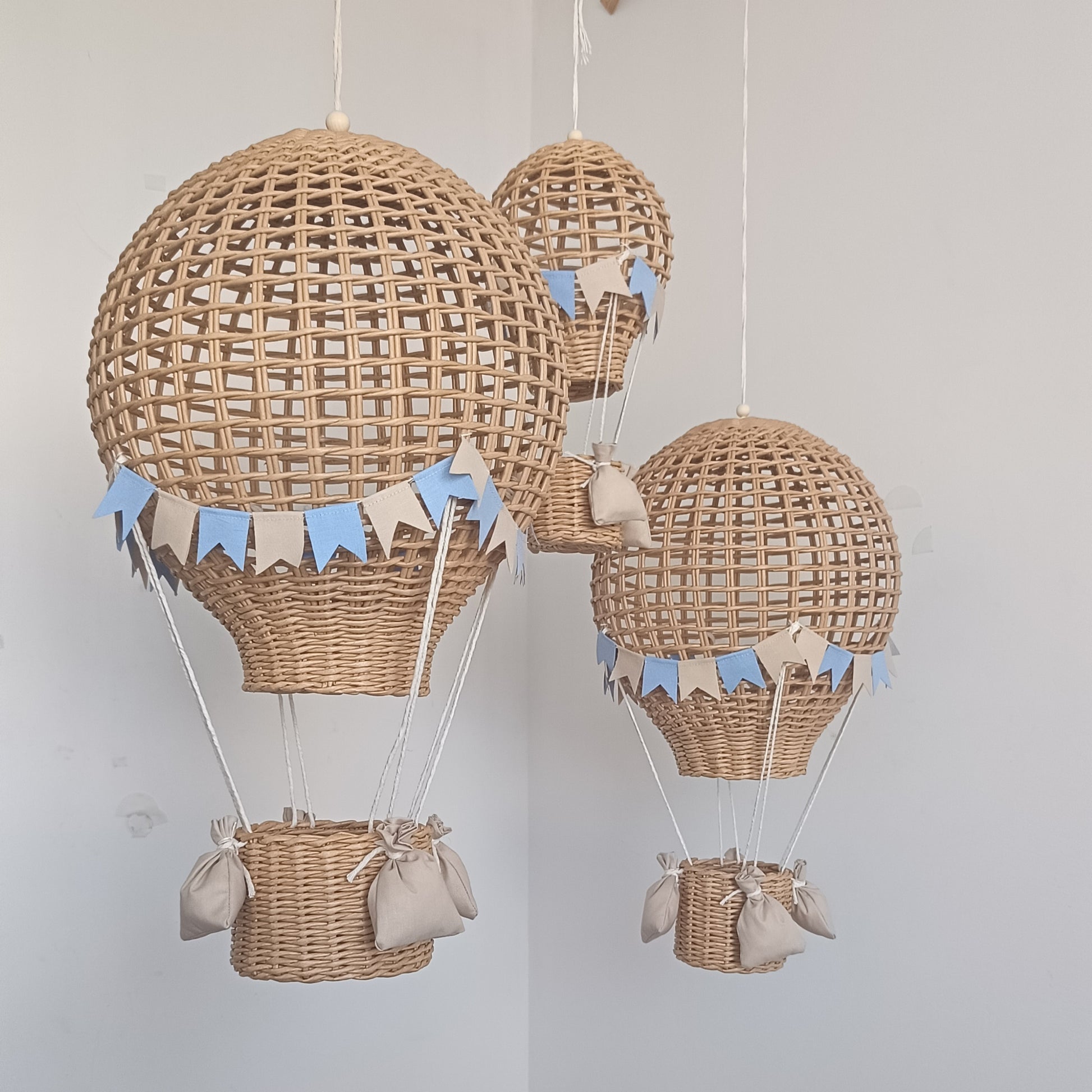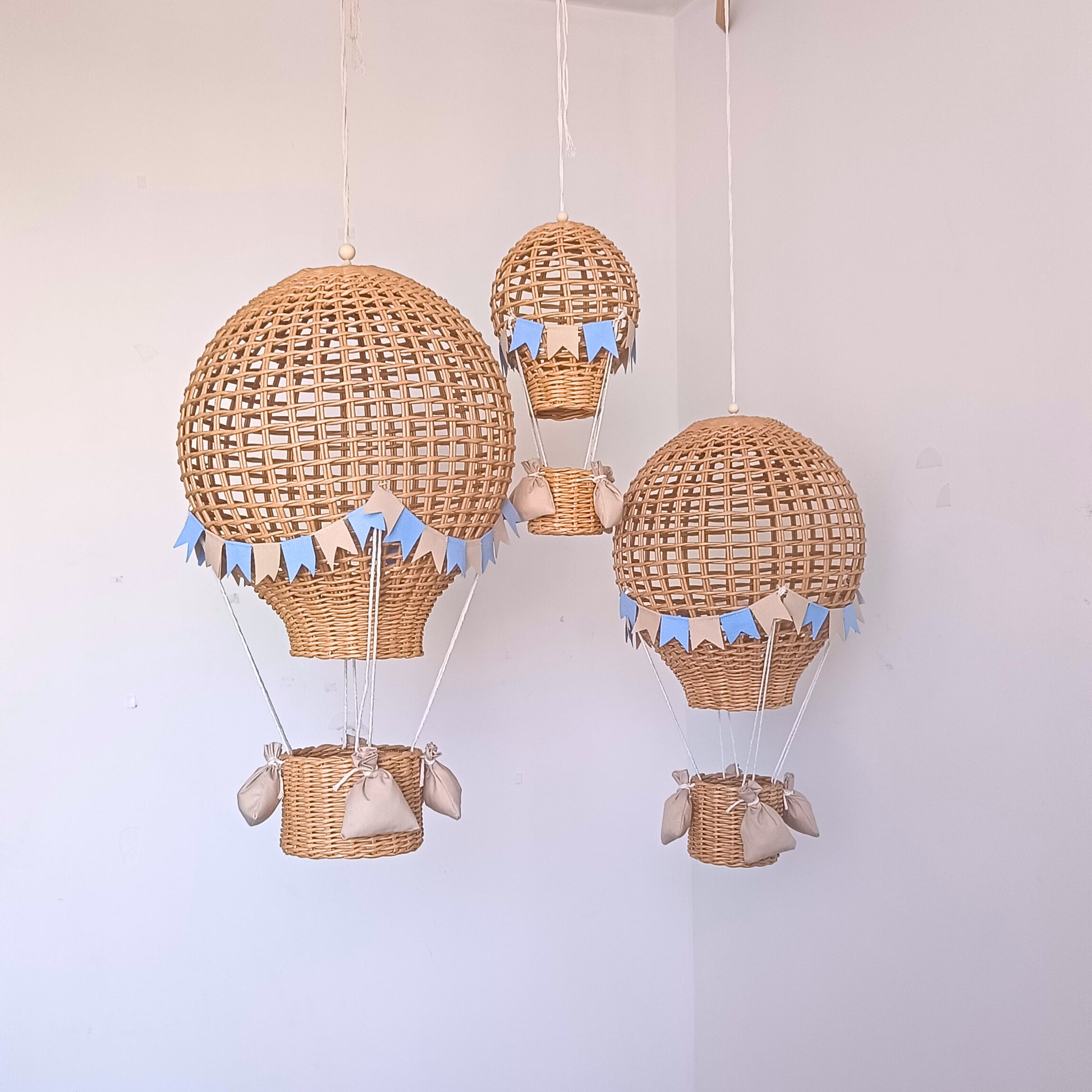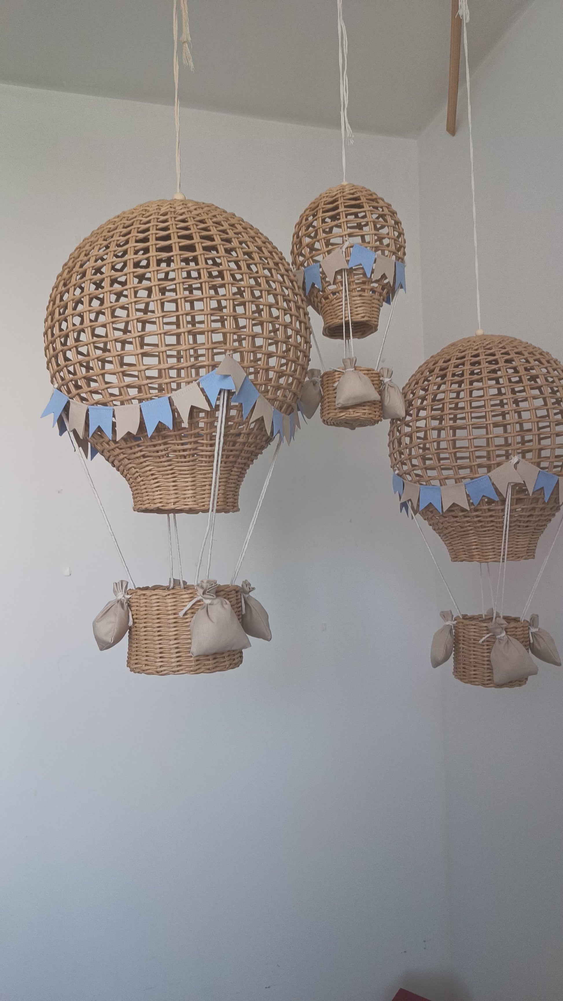 Każdy balon został ręcznie wykonany z wikliny papierowej, co nadaje mu naturalny urok i lekkość. To piękna dekoracja, która doda wnętrzu ciepła i bajkowego charakteru.