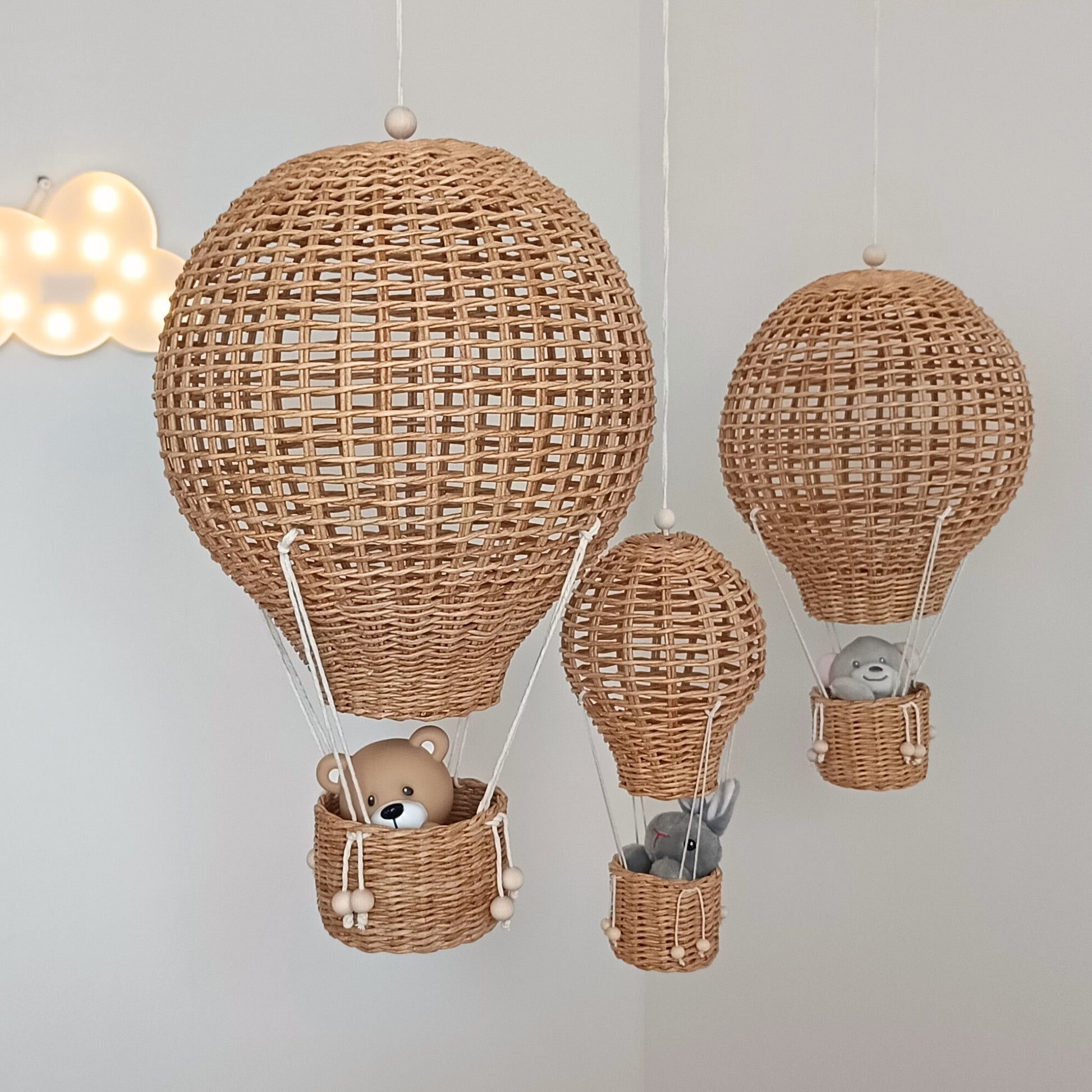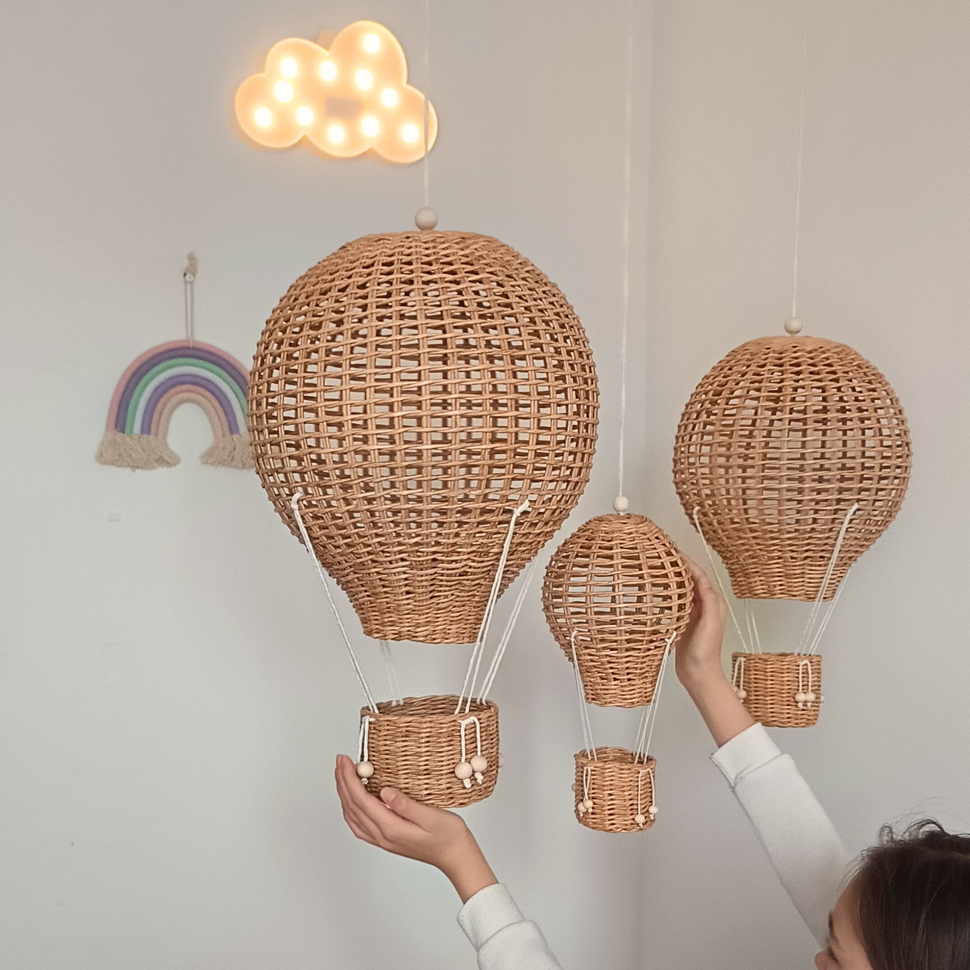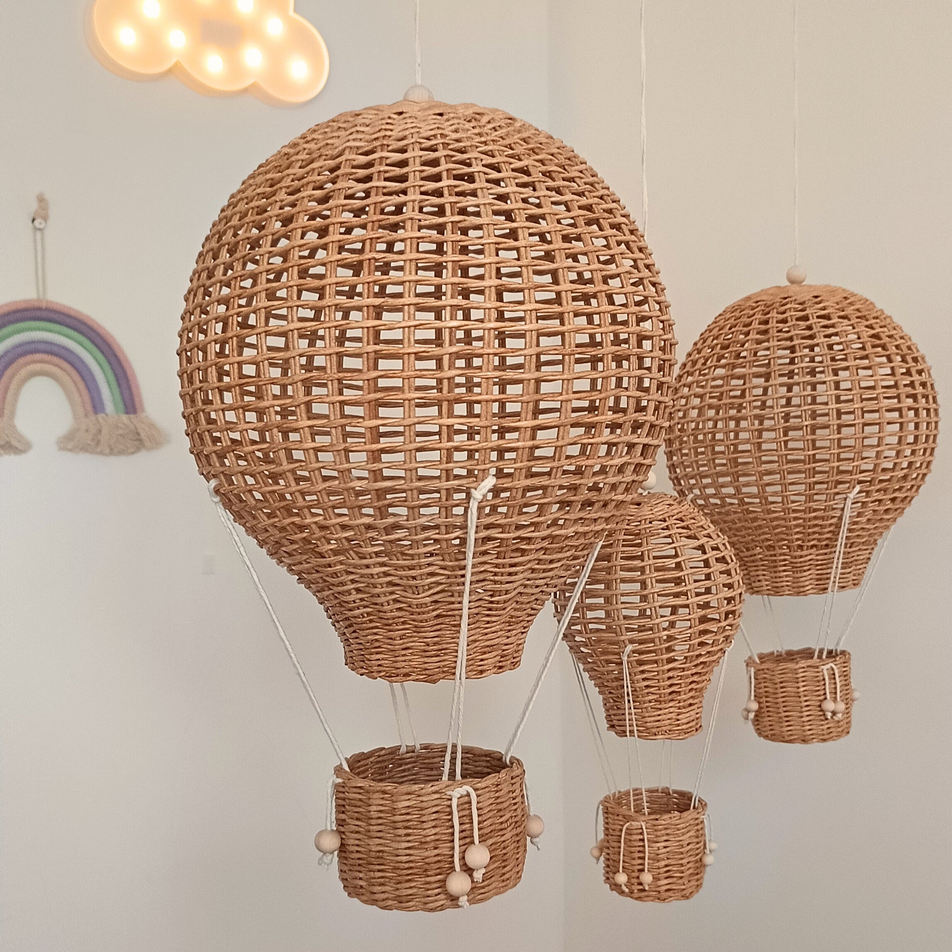Zestaw trzech balonów dekoracyjnych z wikliny papierowej to wyjątkowa ozdoba w stylu boho i prowansalskim, która doda każdemu wnętrzu ciepła i niepowtarzalnego uroku. Balony zostały wykonane ręcznie z dbałością o każdy detal, dzięki czemu zachwycają naturalnym charakterem i subtelnym wyglądem. Idealnie pasują nie tylko do pokoju dziecka, ale również do salonu, sypialni, gabinetu, biura czy kawiarni.